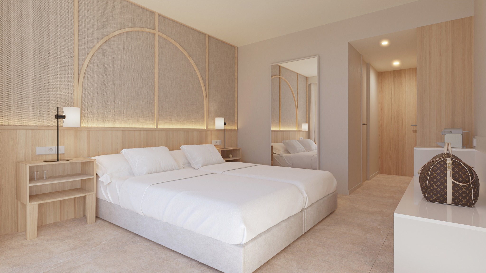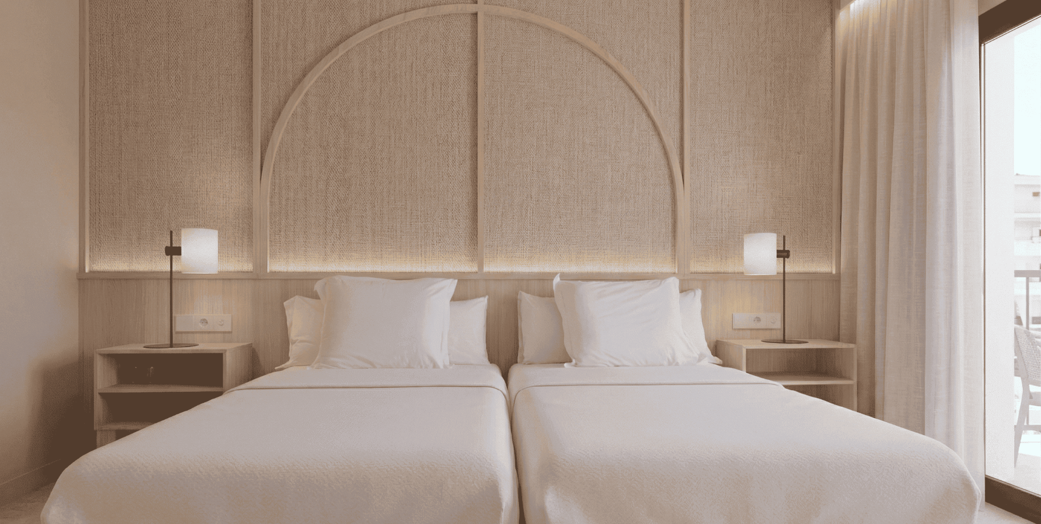Habitación doble renovada con dos camas individuales juntas y acceso a balcón. Su diseño moderno y bien aprovechado ofrece una estancia confortable y práctica, perfecta para quienes buscan comodidad sin necesidad de mayor amplitud.